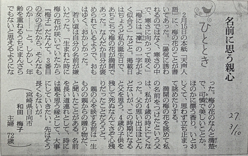 わたしの母は投書が好きで、購読中の朝日新聞によく送っているようです。